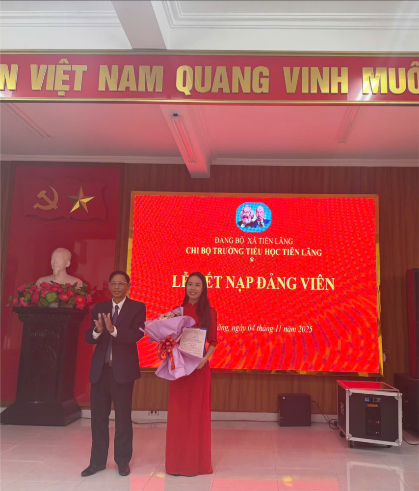 Thực hiện Quyết định số 77-QĐ/HU của Đảng ủy xã Tiên Lãng ngày 29 tháng 10 năm 2025 về kết nạp đảng viên; chiều ngày 4/11/2025 Chi bộ trường Tiểu học Tiên Lãng tổ chức Lễ kết nạp Đảng viên cho đồng chí Nguyễn Quỳnh Mai.